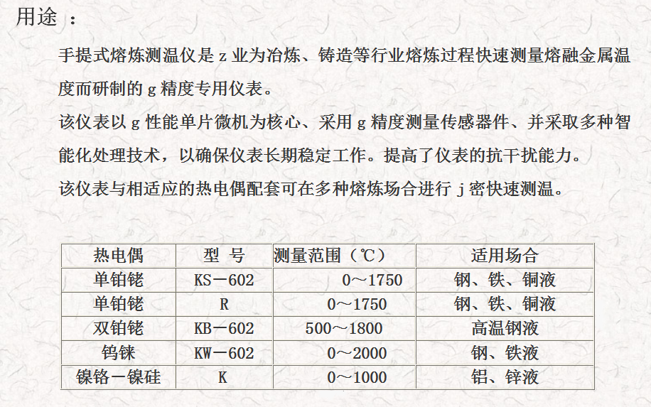CYY-W330不锈钢手提式熔炼测温仪用途: